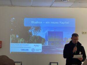 Wir waren in Zeitz bei einer kleinen, aber feinen Veranstaltung. Dort wurde ein gemeinsames Projekt der Universität Leipzig und der Burg Giebichenstein präsentiert. Studierende haben sich ein Semester lang mit der BlueBox beschäftigt – einem Gebäude, das noch aus Zeiten der Landesgartenschau 2004 stammt.